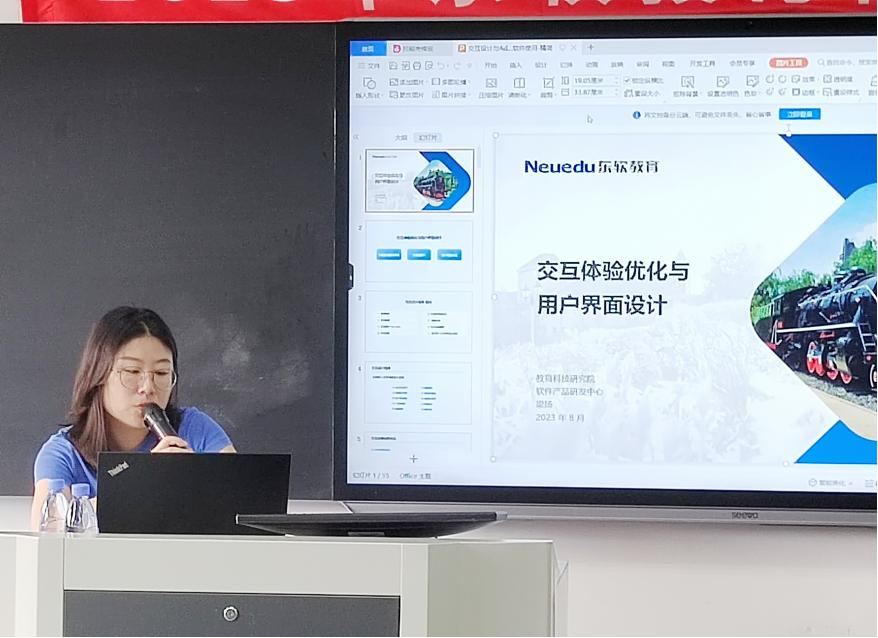 随后,凯发K8天生赢家一触即发教育科技集团教育科技研究院软件产品研发中心设计师梁扬进行交互体验课程讲解。内容围绕交互应用场景案例优化、UI配色技巧以及交互界面布局展开。