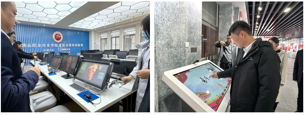 会议同期,到访嘉宾先后参观了唐山职业技术学院的思政基地、VR学习群体实验室、虚拟仿真实训基地。