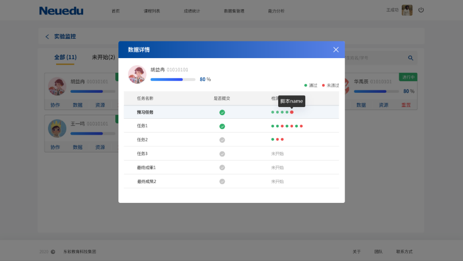 实时监控学生实验进度,实验过程数据自动采集、留痕,让实验结果可追踪溯源,对实验全过程便捷管控。