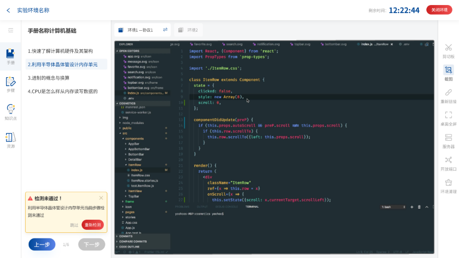 实时检测学生在实验环境中操作步骤的规范性,并将结果反馈给老师和学生,提升交互式教学体验。