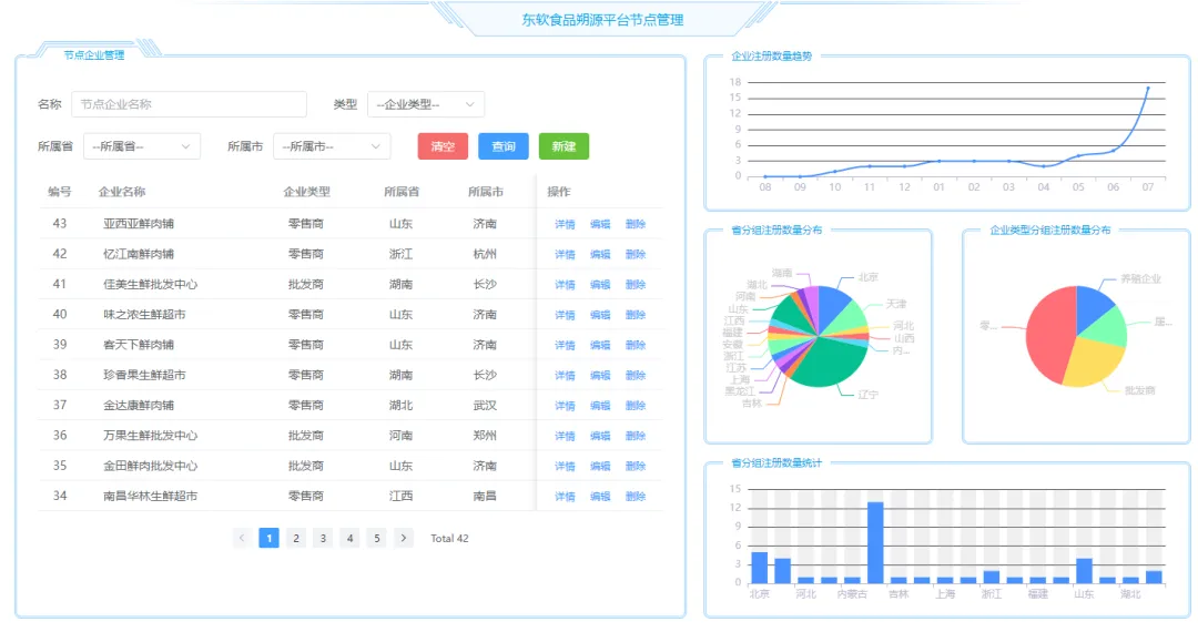本项目实现了在食品流通环节中的每一个节点企业,都能在系统管理端进行注册。注册企业可以发布产品批号,而消费者可顺利获得溯源标识码对食品流通的所有环节信息进行溯源。