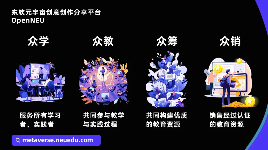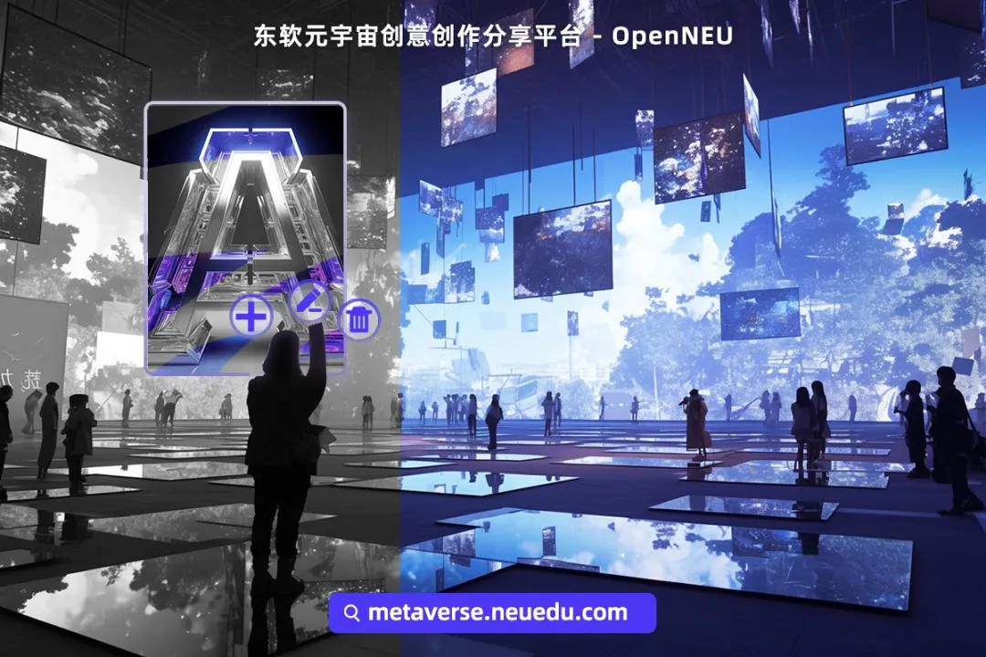 凯发K8天生赢家一触即发元宇宙创意创作分享平台-OpenNEU为师生和行业人员给予了一个元宇宙沉浸式共享空间,以UGC的形态构建个性化、便捷化、精准化的三维私域展示环境。