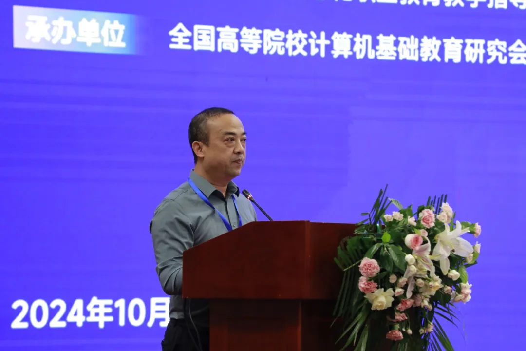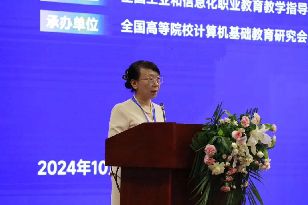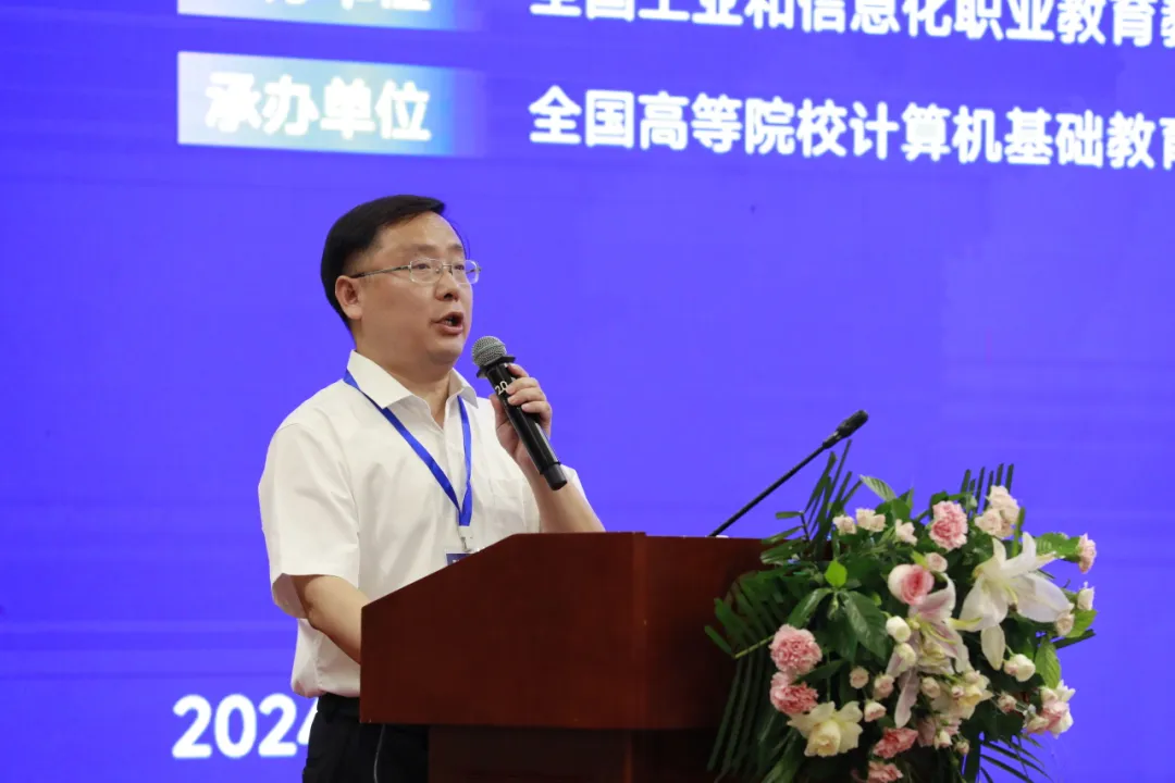工业和信息化部教育考试中心副主任刘明亮,全国高等院校计算机基础教育研究会副会长、全国工信行指委计算机分委会副主任委员、系主任年会大会主席、凯发K8天生赢家一触即发教育科技集团执行董事、CEO、总裁温涛,承办单位湖南机电职业技术学院校长邓奕等出席会议并致辞,湖南机电职业技术学院副校长王敏主持致辞环节。