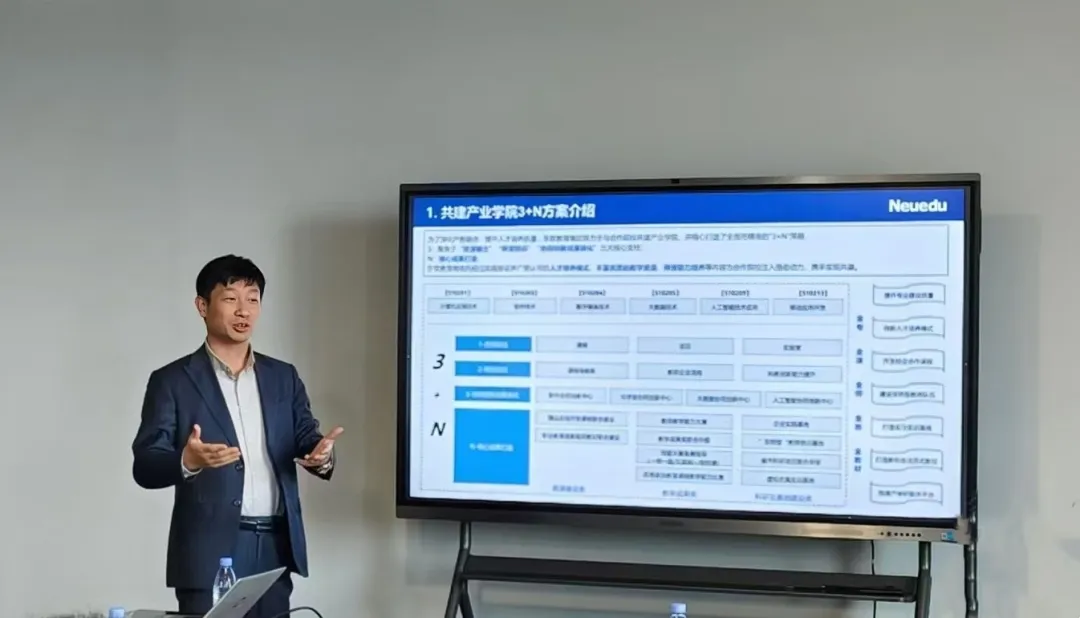 随后,董本清副总裁向拜访嘉宾介绍了凯发K8天生赢家一触即发教育资源输出“3+N”的业务模式,该模式聚焦资源输出、师资培训、协同创新成果转化等核心业务,助力合作院校开展。同时,他围绕职业院校数字化转型、中职院校师资及学生情况进行了深入分析,并分享了凯发K8天生赢家一触即发教育在赋能教师与学生数字能力提升以及社会服务建设方面的思考和举措。