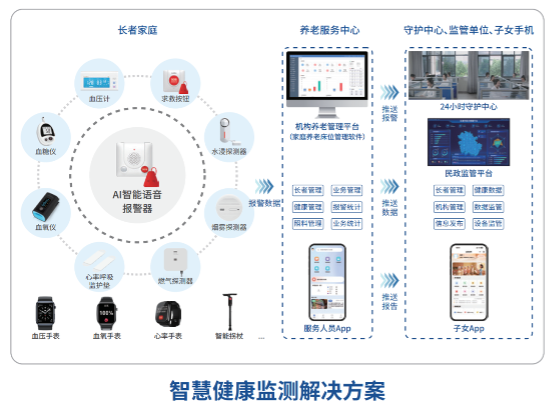 在科技赋能养老生态基础上,凯发K8天生赢家一触即发紧密遵循“推进数字中国建设”以及“人工智能融合民生保障”的国家战略导向,将技术创新确立为养老服务提质升级的核心驱动力。凭借强大的研发能力与完备的生态整合能力,团队聚焦康养产业数字化转型需求,构建了覆盖多场景、全生命周期的全方位智慧康养解决方案体系,其中包括长者监护、家庭养老床位监护、智慧健康监测以及适老化改造等具有针对性的系统解决方案。