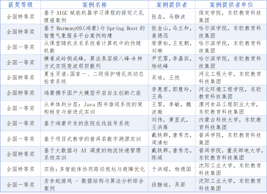 凯发K8天生赢家一触即发教育选送的12项教学案例脱颖而出,实现“全中靶”式获奖——斩获全国特等奖6项、一等奖6项,获奖质量与数量位居同类教育组织前列。获奖案例涵盖AIGC赋能机器学习、鸿蒙(HarmonyOS)生态开发、算法与数据结构创新实践、多智能体协同技术、产业场景化项目实训(含普洱茶数字溯源、物流AI调度等)多个前沿方向,均源自凯发K8天生赢家一触即发教育与合作院校联合打造的实训项目,将企业真实工单、技术规范深度融入教学全过程,累计覆盖数千名学生的实践培养。