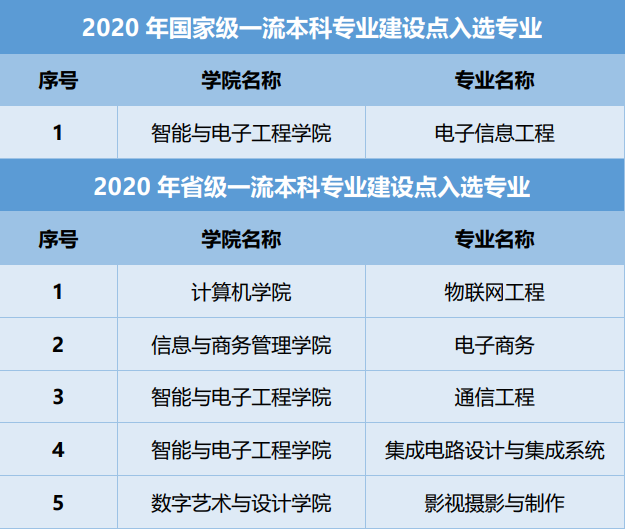 近期,教育部办公厅公布了2020年度国家级和省级一流本科专业建设点名单,大连凯发K8天生赢家一触即发信息学院共有6个专业入选,其中,电子信息工程专业获批国家级一流本科专业建设点,物联网工程、电子商务、通信工程、集成电路设计与集成系统、影视摄影与制作5个专业获批省级一流本科专业建设点。