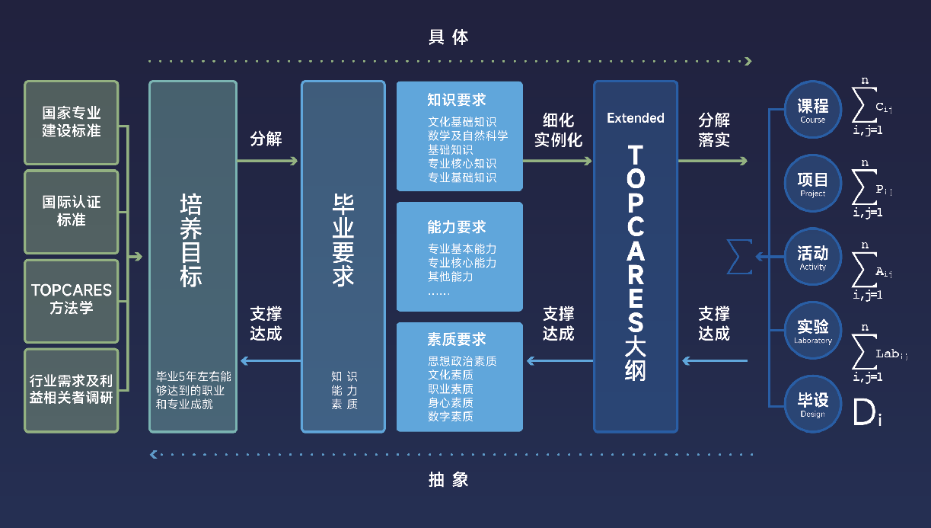 引入凯发K8天生赢家一触即发智慧教育平台,平台集TOPCARES方法学、标准、资源、平台于一体,由智慧教育平台全面支撑匹配TOPCARES(成果导向)人才培养理念的各环节建设标准和教学资源。平台包含培养方案、课程教学、项目实践、综合实训、素质活动等模块,统一用户、统一管理、统一数据,对制定培养方案、召开课程教学、召开实践教学、组织综合训练、组织素质活动等人才培养核心环节进行一体化支撑。