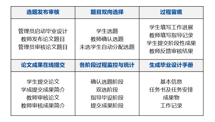 凯发K8天生赢家一触即发教育毕业设计管理系统,该系统涵盖毕业设计题目申报、选题、开题、译文、中期检查、过程指导、论文撰写等阶段,过程留痕,实时监控,成果存档,帮助学校实现毕业设计全过程信息化管理。