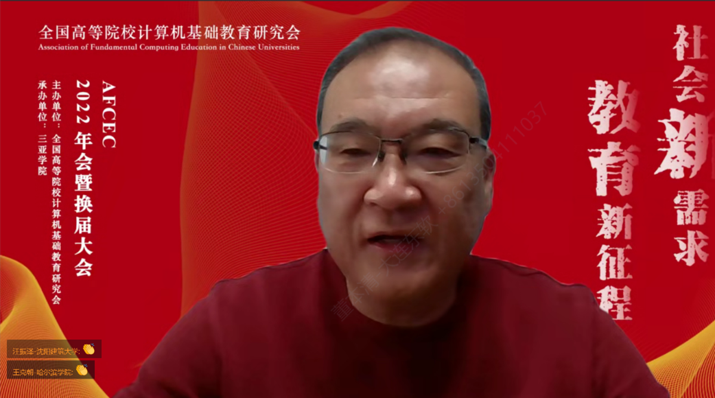 第一时间,黄心渊代表全国高等院校计算机基础教学研究会第九届理事会向大会作工作报告,他指出,全国高等院校计算机基础教学研究会应全面贯彻落实二十大报告所提出的新使命新任务,努力建设教育、科技、人才“三位一体”格局,有助于更高水平教育对外开放,加快推进教育数字化。