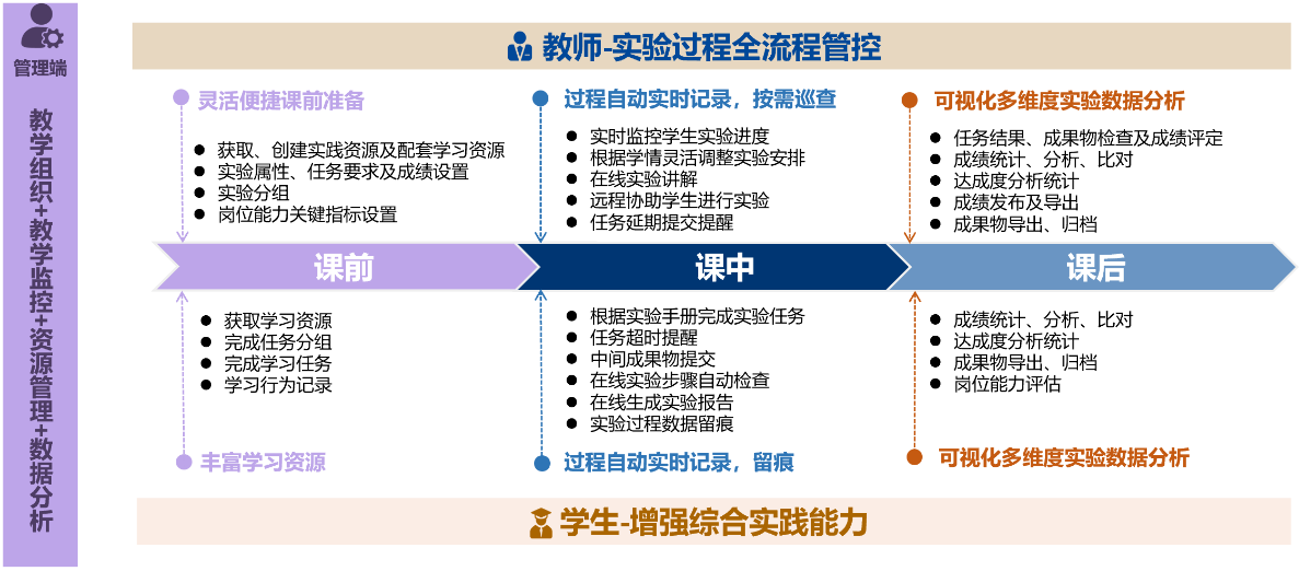 实时监控学生实验进度,实验过程数据自动采集、留痕,让实验结果可追踪溯源,对实验全过程便捷管控。