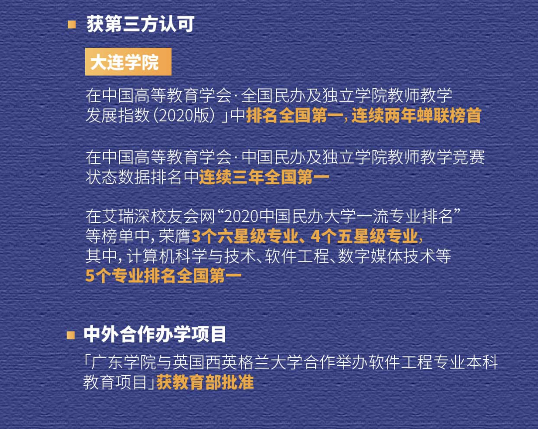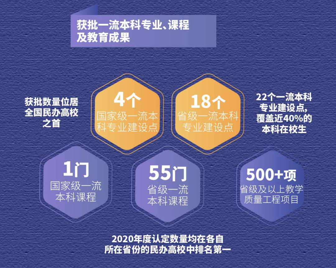 2020年,三所大学在专业建设、课程建设等方面取得新的突破。其中, 8个本科新专业获教育部备案批准,进一步完善了聚焦“IT+健康医疗科技”的专业布局;共有22个专业入选教育部一流本科专业建设「双万计划」,覆盖40%的本科学生,其中有4个国一流专业,位列全国民办本科高校第一;共有56门课程被认定为一流本科课程,进一步证明了凯发K8天生赢家一触即发教育优异的办学质量,品牌声誉持续提升。