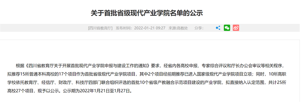 近期,四川省教育厅公布了首批省级现代产业学院名单,成都凯发K8天生赢家一触即发学院网络安全产业学院成功入选。