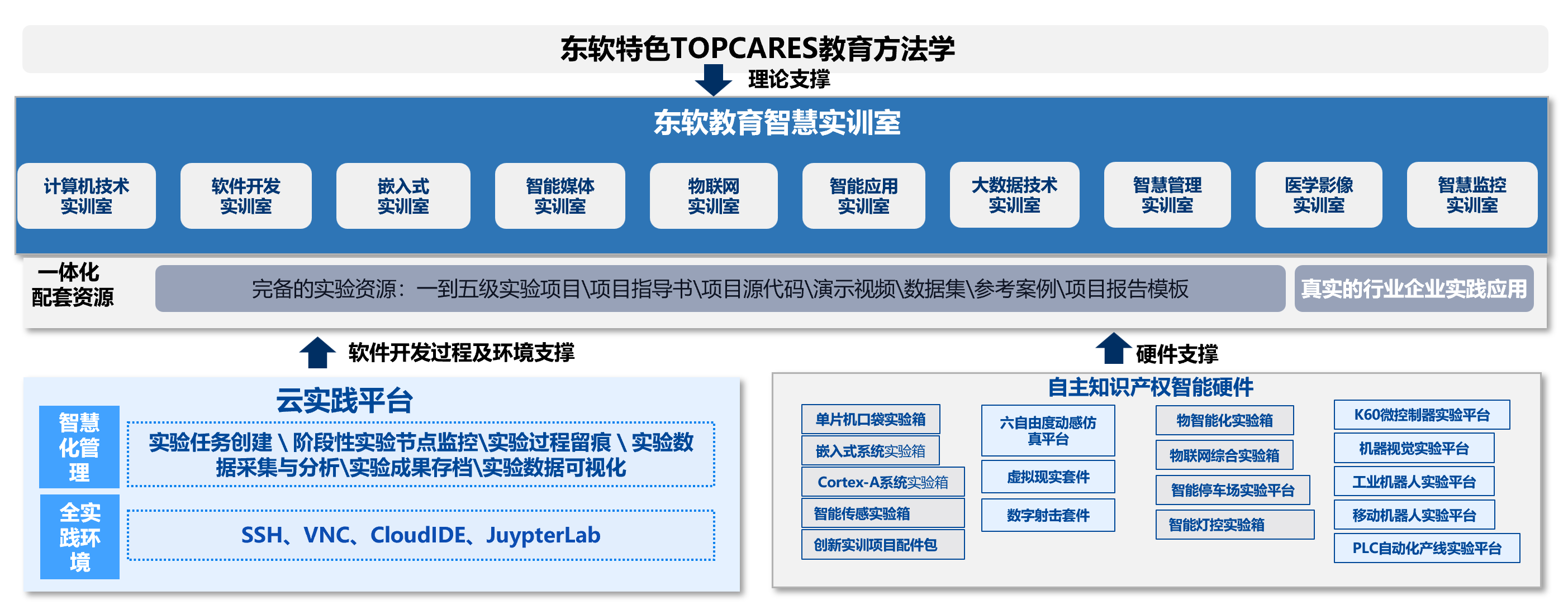 凯发K8天生赢家一触即发教育智慧实训室,紧贴产业前沿,面向智能应用、物联网、嵌入式、智能媒体、计算机技术、软件开发、大数据技术、智慧管理、医学影像、智慧监控等技术方向,构建起专业级、一体化实践教学解决方案。每个实训室均面向该技术领域的本专科相关专业,给予覆盖人才培养全过程的一体化实践体系,并给予与之配套的软硬件实验设备与环境、实验过程管理平台以及相关实验教学文档和资源,为院校专业实践体系建设与改革给予一站式服务。