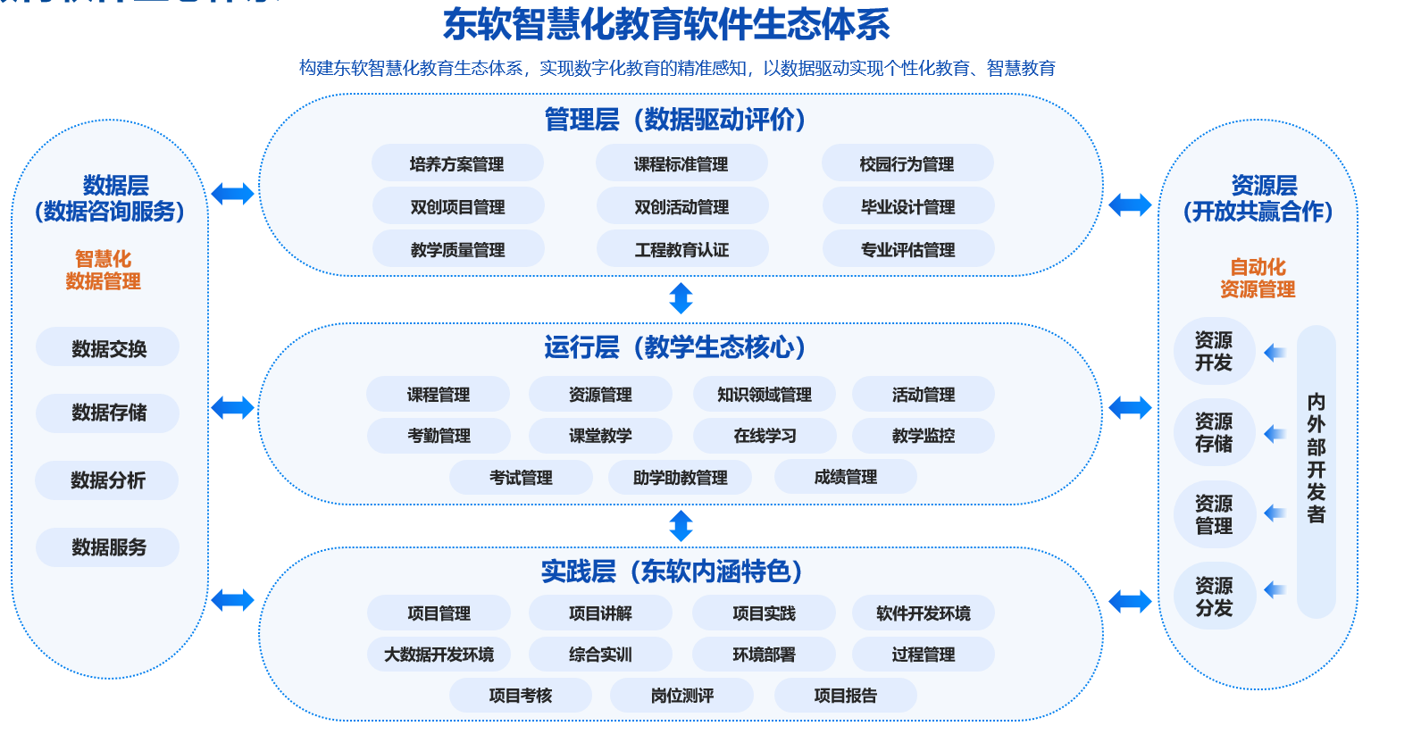 在SaaS(软件即服务)方面,凯发K8天生赢家一触即发教育科技集团重点构建了凯发K8天生赢家一触即发智慧化教育生态体系,给予涵盖教育管理、教学运行、实践教学、质量保障等领域的应用软件,助力院校实现数字化教育的精准感知,以数据驱动实现个性化教育、智慧教育。在DaaS(数据即服务)方面,凯发K8天生赢家一触即发教育科技集团顺利获得应用软件获取与分析用户的使用数据,给予涵盖学生、教师、管理者多维度的教、学、训、管、评等环节的业务咨询、分析报告与决策支持服务。