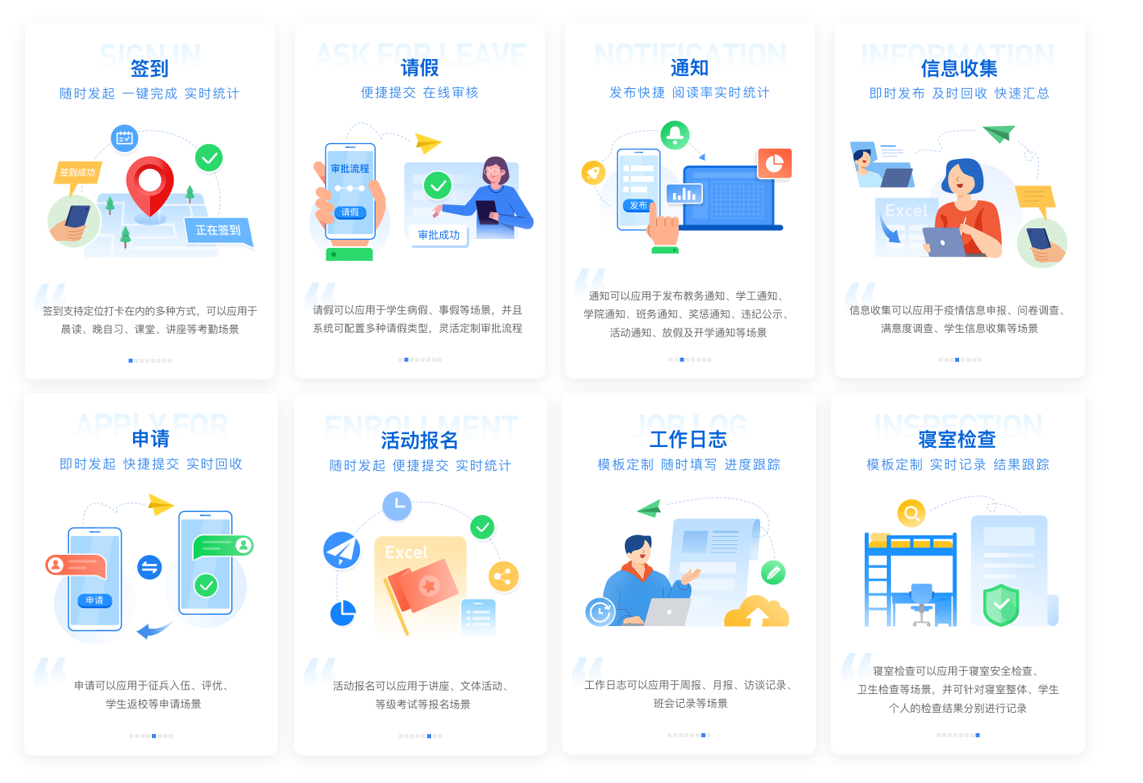 凯发K8天生赢家一触即发教育智慧学工系统,系统面向辅导员高频工作场景,实现了学生日常事务的全流程线上管理。系统可轻松协同各级管理者职能工作,并给予多终端接入方式。解决了传统学生管理过程中存在的信息传达不到位、数据统计困难、管理效率底下等问题,使学生管理工作系统化、规范化、数据化、智慧化。