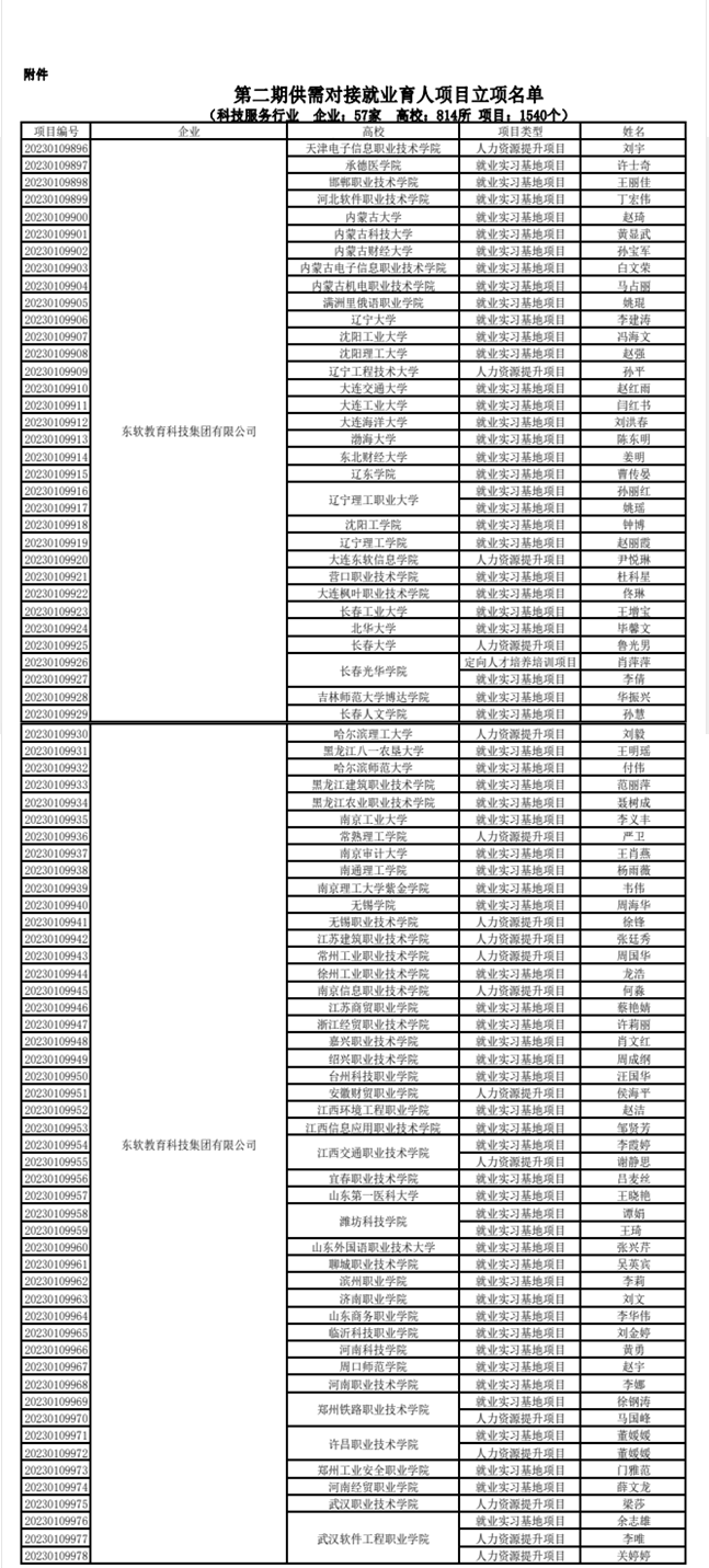 第二期供需对接就业育人项目立项名单中,共有75所高校顺利获得与凯发K8天生赢家一触即发教育联合申报成功立项,合作项目分为定向人才培养培训、就业实践实习基地建设、人力资源提升三种类型。