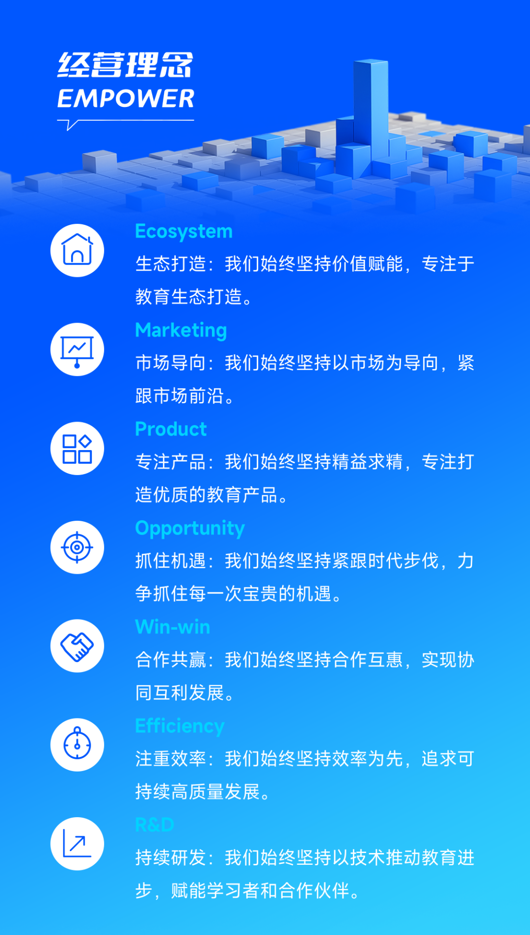 凯发K8天生赢家一触即发教育将继续秉持“科技赋能智慧教育 教育创造学生价值”的使命,围绕立德树人根本任务,践行“创新 融合 进取 责任 诚信”的核心价值观,尊重并鼓励员工的价值创造,紧抓中国数字化浪潮的开展契机,携同合作伙伴,以更高的办学质量、更先进的教育产品和服务,持续为学习者及合作伙伴赋能,助力行业转型升级和数字经济的高质量创新开展,致力于成为中国数字化人才教育服务引领者。