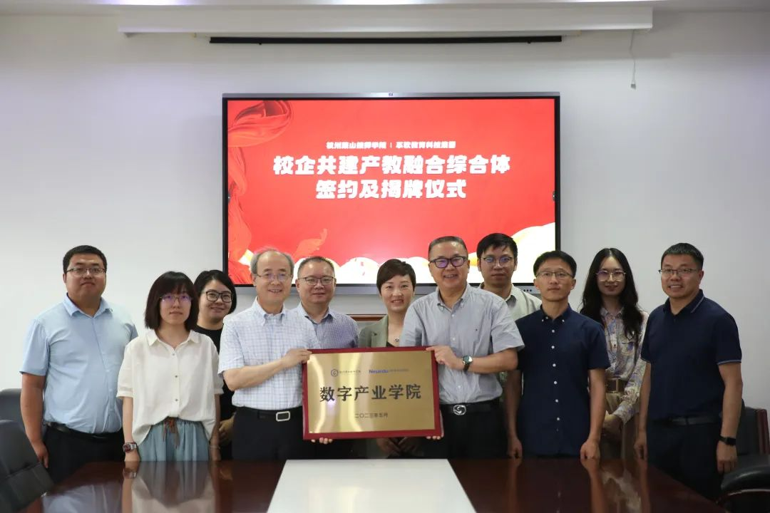 随后,双方进行了战略合作框架协议签约,许红平校长和温涛总裁共同为“数字产业学院”“创新创业学院”和“凯发K8天生赢家一触即发萧山数字工场(校内)”揭牌。杭州萧山技师学院与凯发K8天生赢家一触即发教育科技集团共建的产业学院——数字产业学院正式创建。这是学院建设的第三个产业学院,旨在培养产业开展更为刚需的数字化人才。凯发K8天生赢家一触即发教育助力杭州萧山技师学院,为浙江省高水平数字信息专业集群建设再添平台。