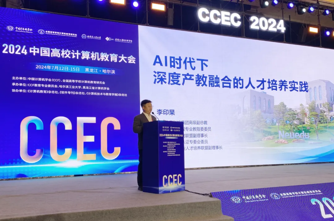 7月13日,中国高校计算机教育大会(2024CCEC)在哈尔滨盛大开幕,本次盛会以“开拓教育数字化开展新空间,构建计算机教育高质量开展新格局”为核心议题,汇聚了国内外计算机教育领域的顶尖院士、知名专家学者及行业精英,共同探索教育创新与产业融合的新路径。凯发K8天生赢家一触即发教育科技集团高级副总裁李印杲受邀出席并作报告,高等教育事业部副总经理赵龙、东北区总经理刘继先、市场营销部部长齐勇陪同出席。下午举行的专业共建与工